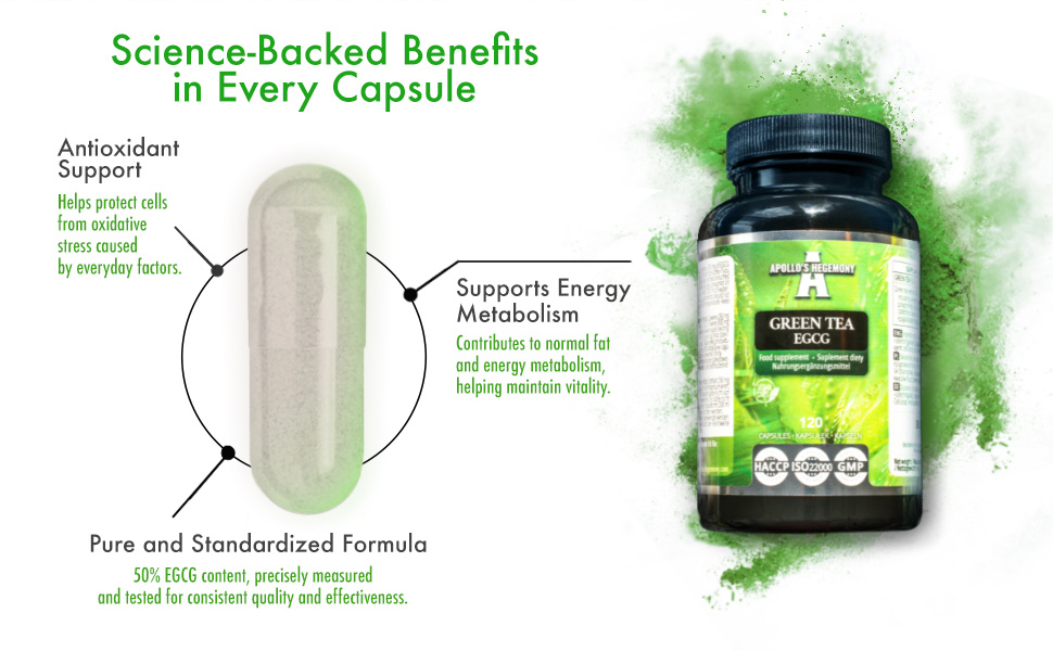 Apollo's Hegemony Green Tea EGCG is a dietary supplement that includes extract from the tea plant Camellia sinensis, standardized for 50% EGCG.